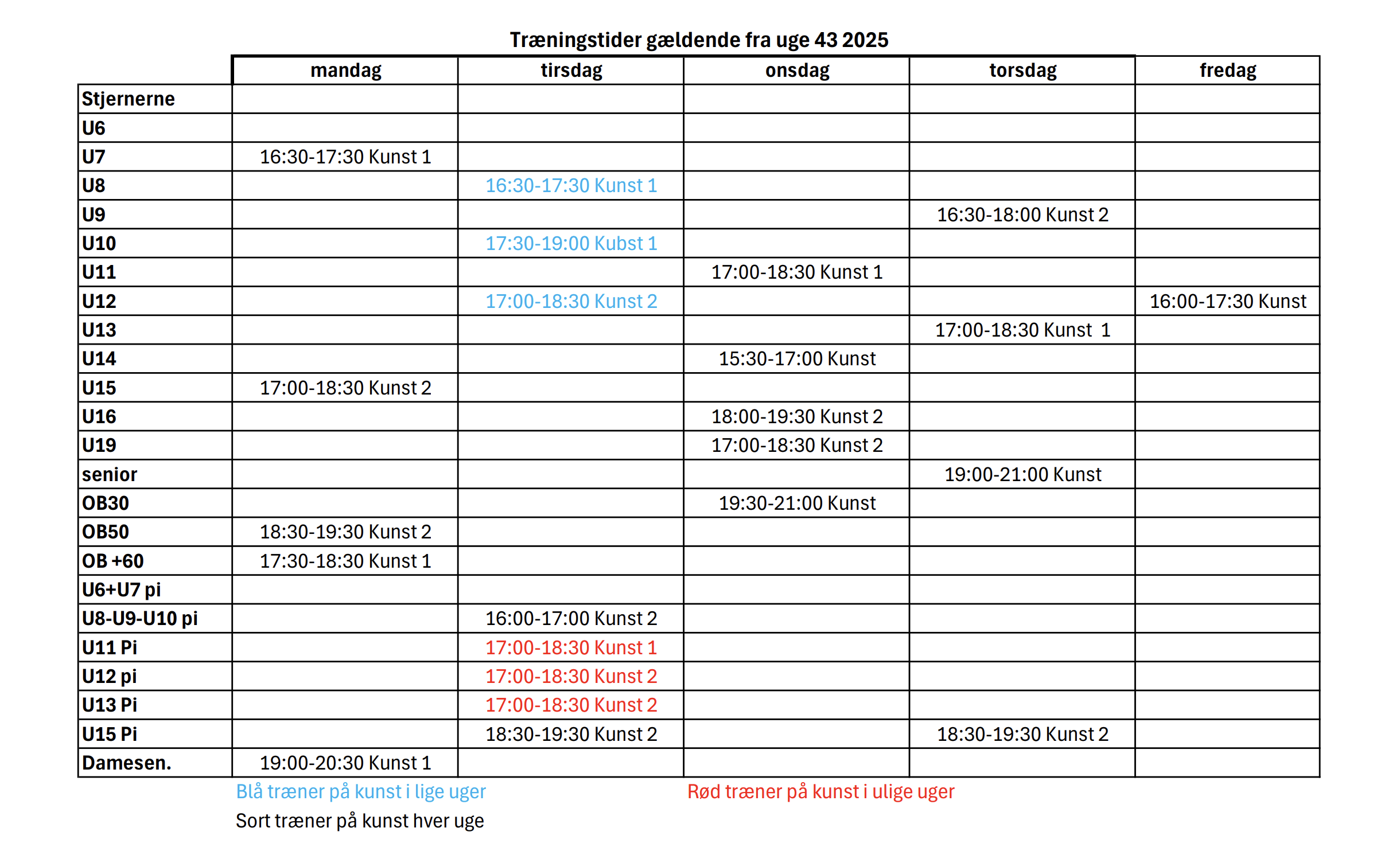 Trænere og træningstider